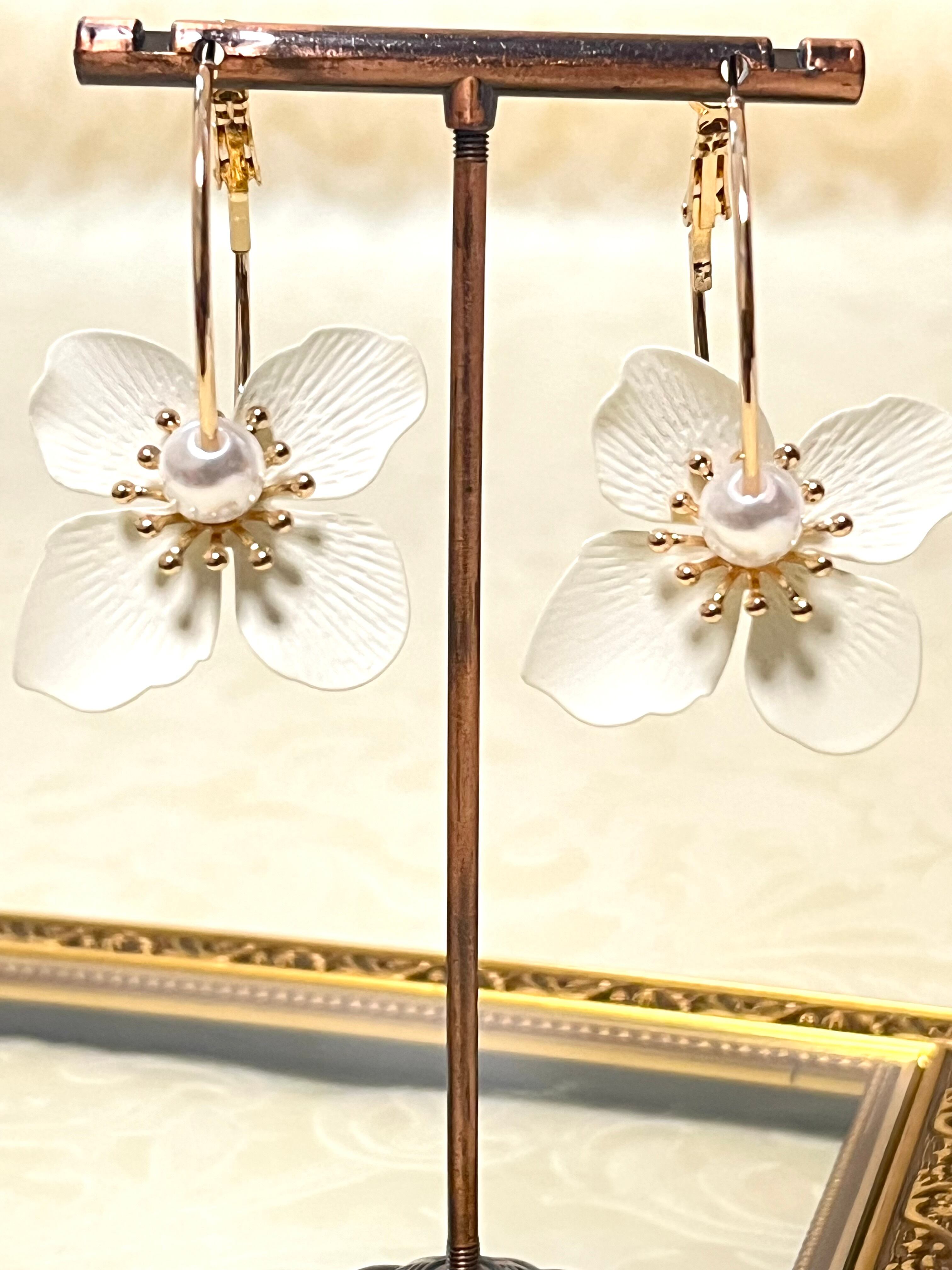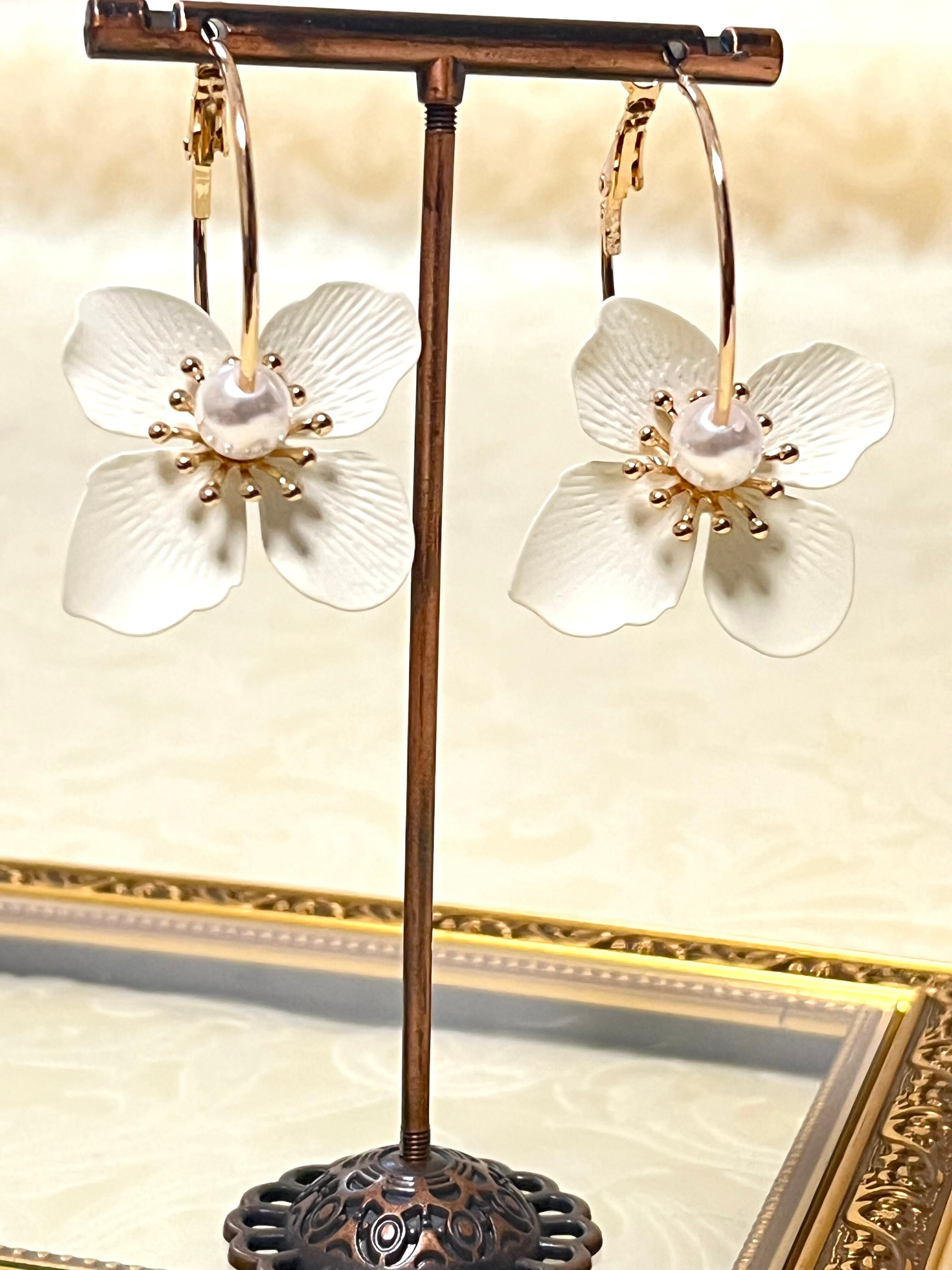 #ホワイトフラワーピアス #フランス輸入 #新入荷 #耳元のお洒落 #ファッションアクセサリー #おしゃれコーデ #フラワーデザイン #インポートアクセサリー #フラワーピアス#素敵なプレゼント #大人ピアス #お花ピアス#フランス #パリ #フープピアス#インポートピアス #フランスアクセサリー#フランス直輸入