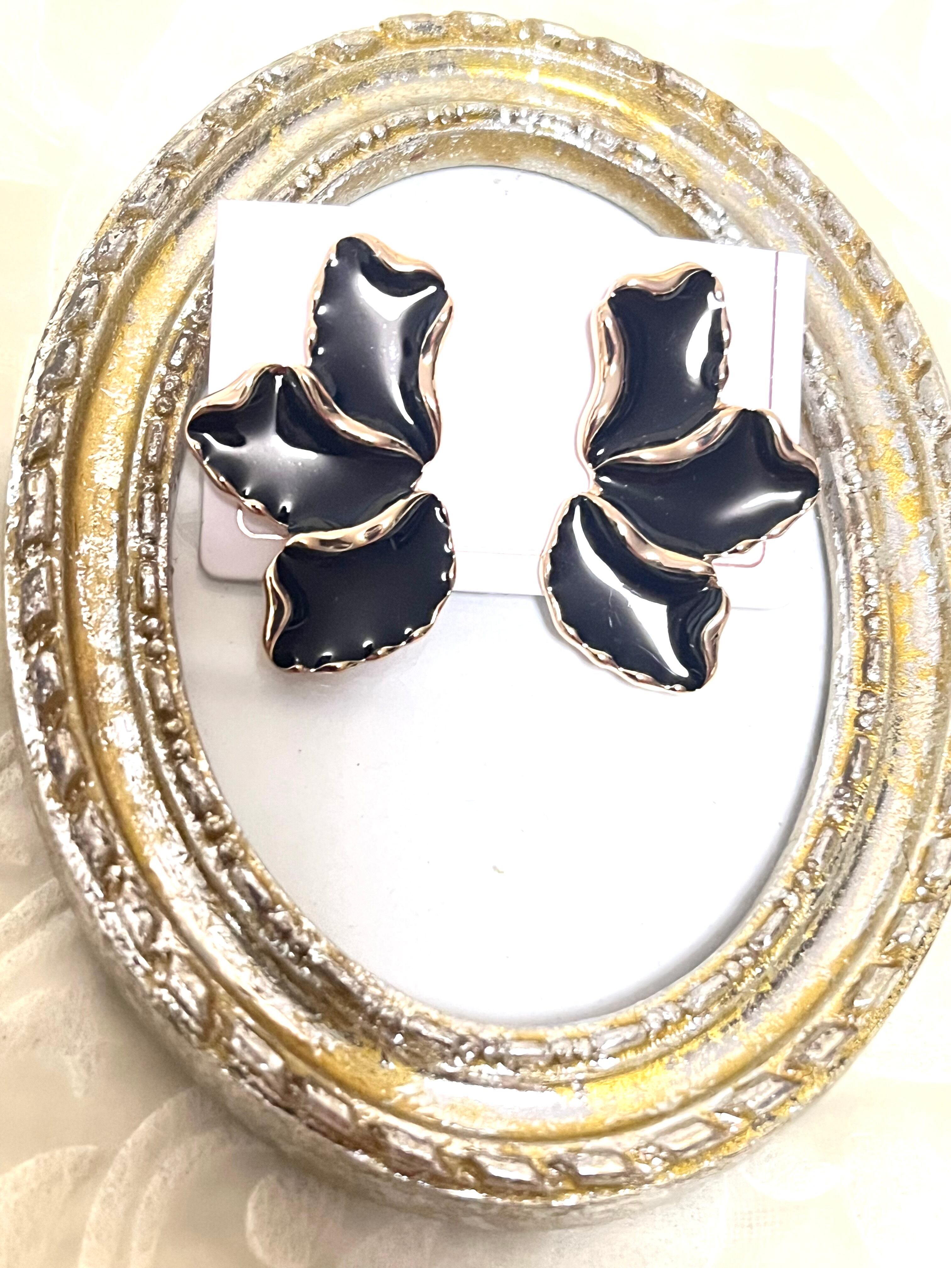 #ブラックピアス#花びらピアス #おしゃれアイテム #ファッションアクセサリー #耳元のお洒落 #特別なお出かけ #プレゼントアイテム #インポートピアス #エレガントアクセサリー #大人ピアス #モダンデザイン #アクセサリー #特別な贈り物 #大人アクセサリー#スタイリッシュ #ブラックゴールド #花モチーフ #ファッション #おしゃれ #洗練されたデザイン #プチギフト #フランス輸入#フランスアクセサリー#フランス#パリ#インポートアクセサリー