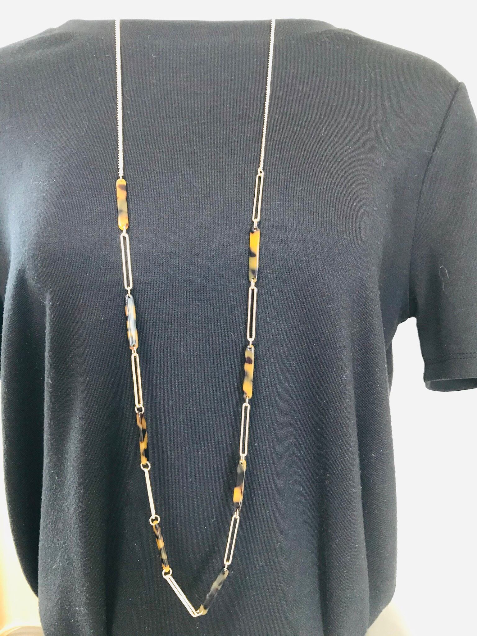 フランス直輸入のべっ甲タイプでとってもお洒落なデザインのロングネックレスです。