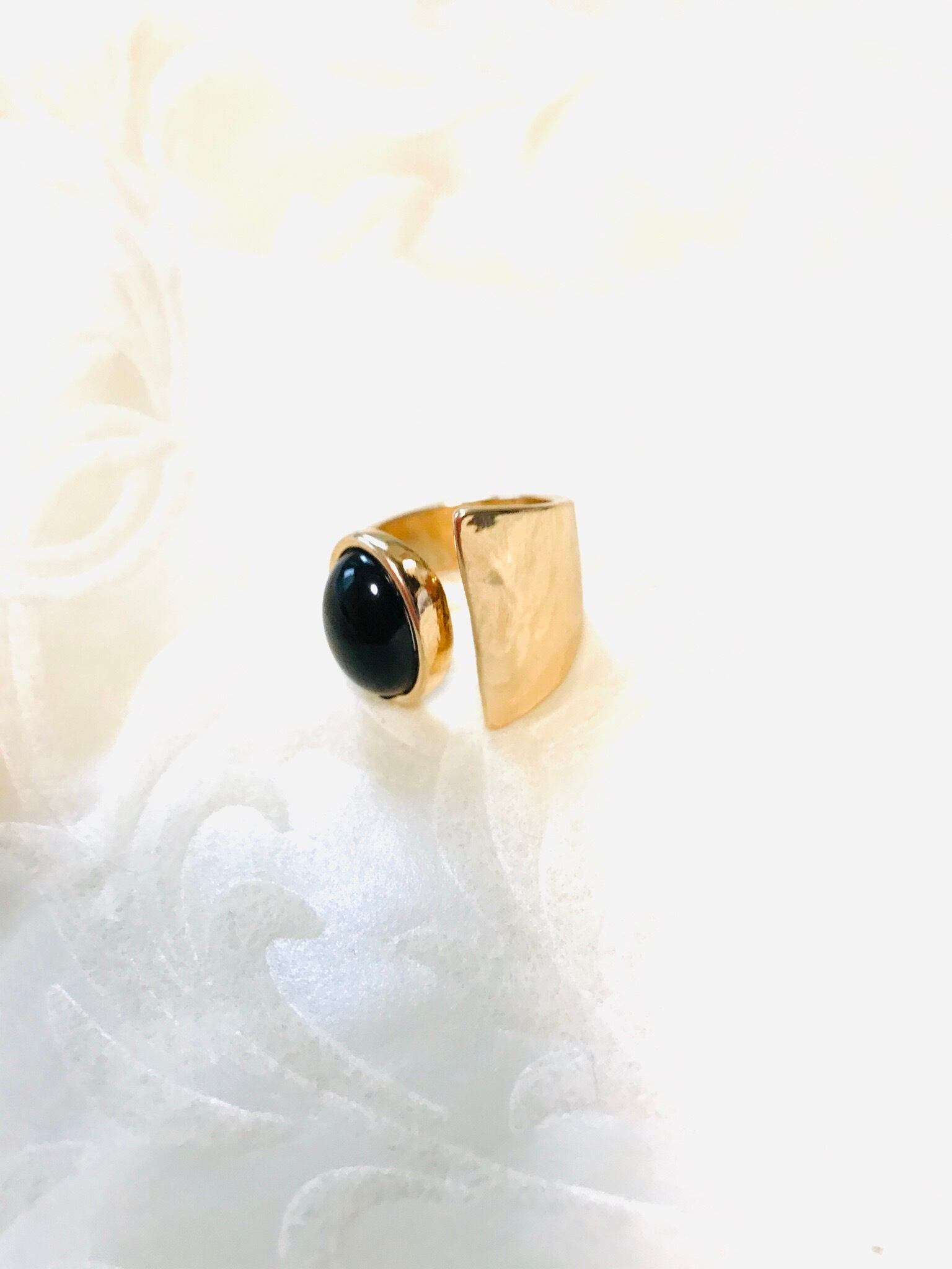 ブラックとゴールド色がとてもクールで、デザインもオシャレなフランス直輸入のファッションリングです。