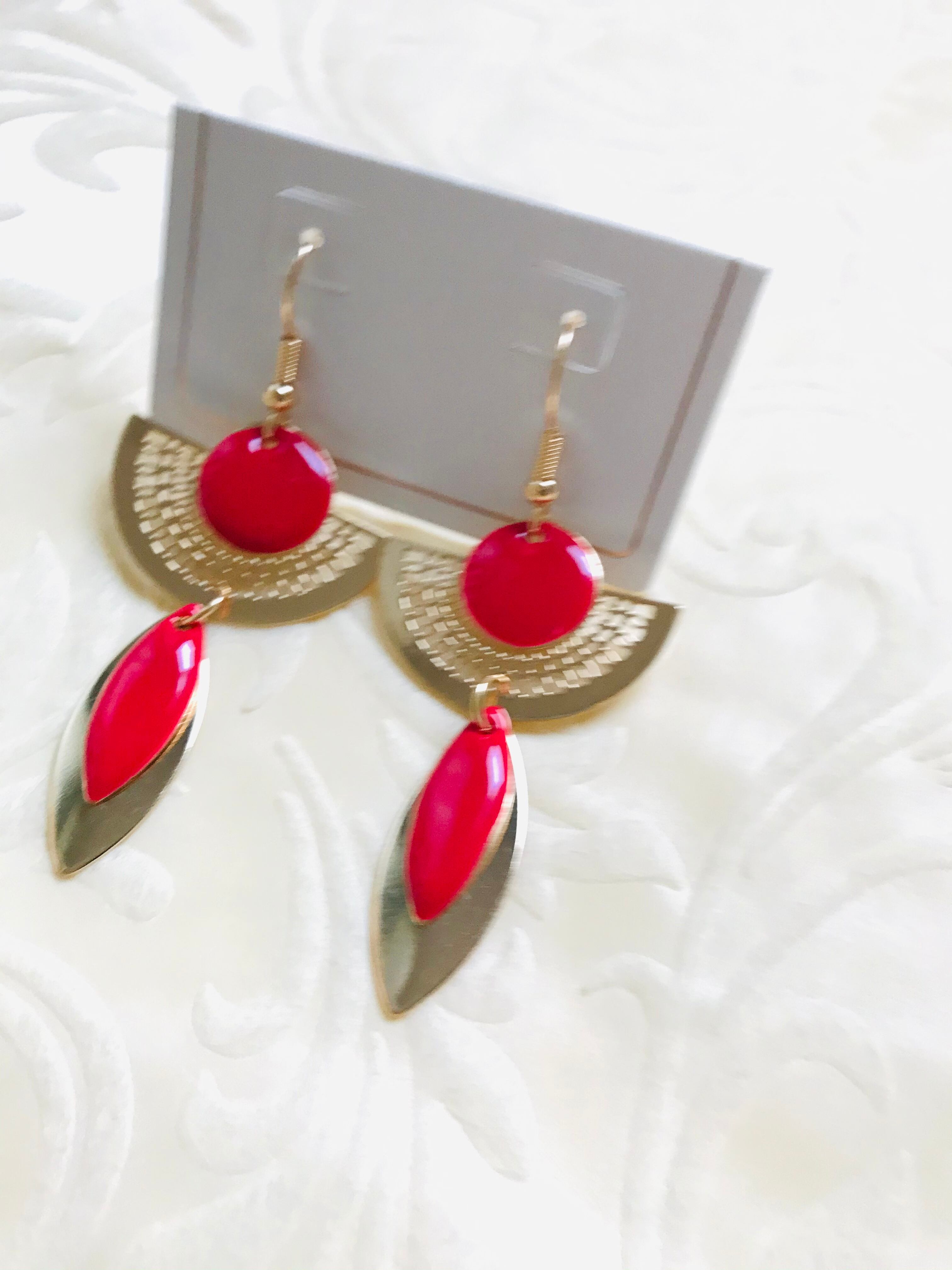 鮮やかな赤色とゴールド使いのお洒落なピアスがフランスより入荷しました。