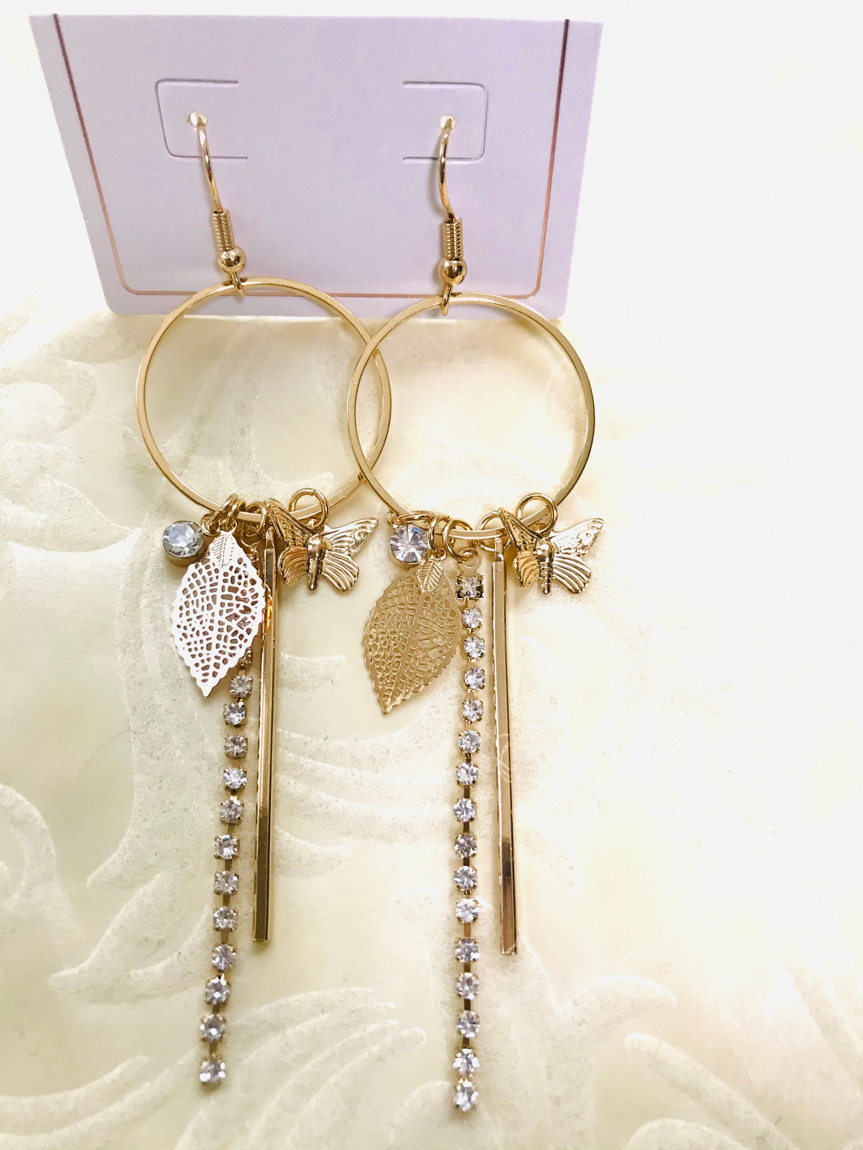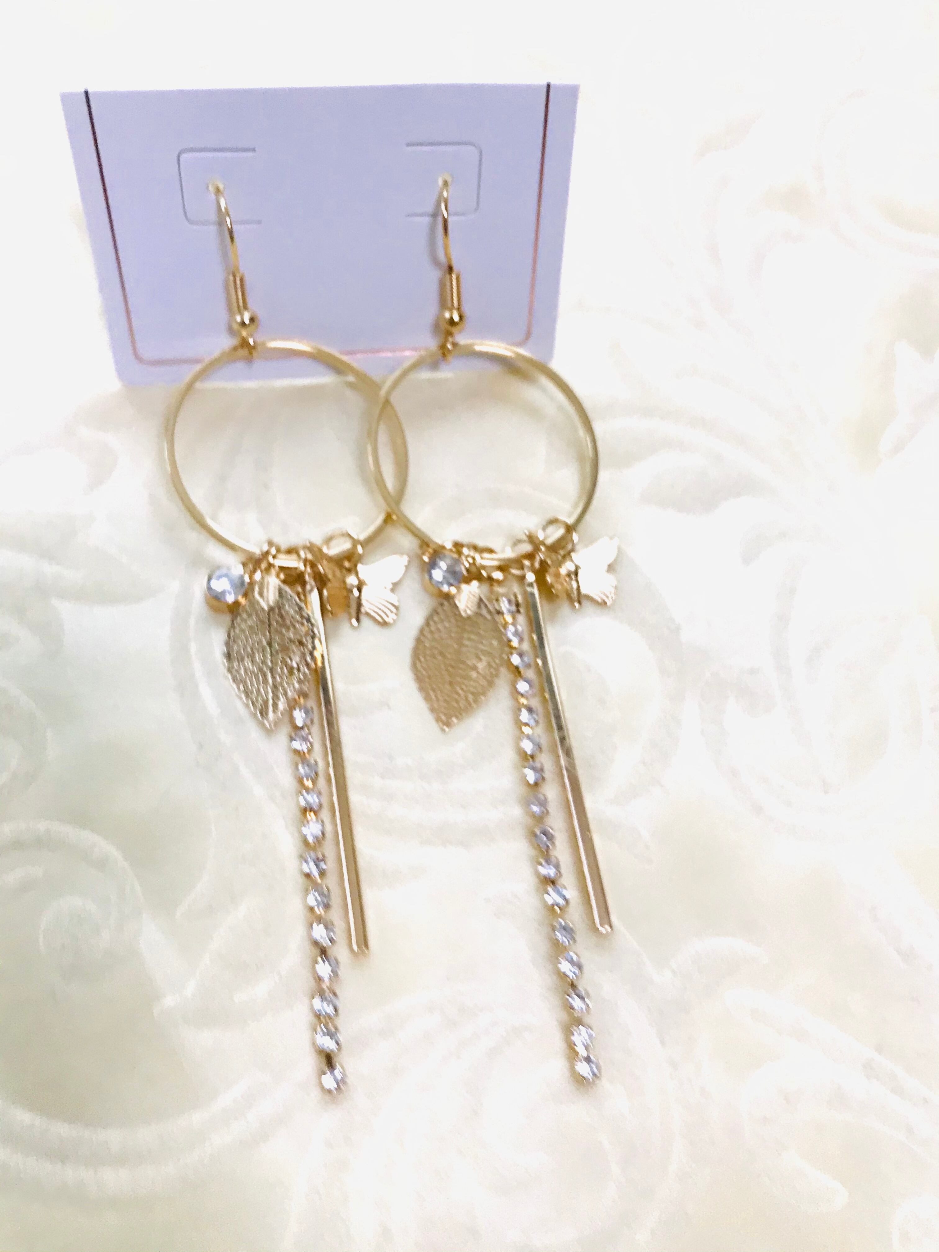 フランス直輸入 フランス輸入アクセサリー バタフライ 蝶々 リーフ 葉っぱ 大人可愛いピアス フェミニン