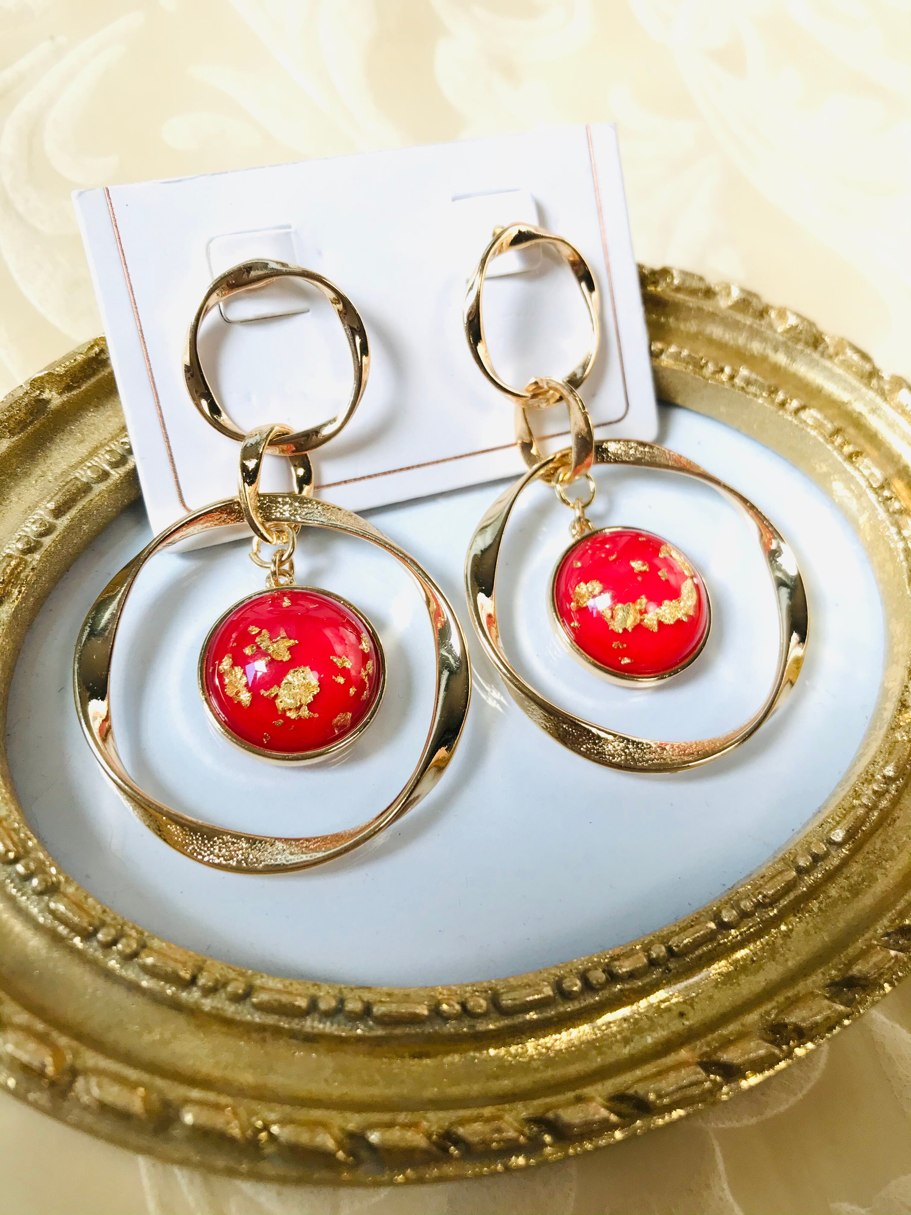 レッド&ゴールドの目を惹くお洒落形状ピアスがフランスより入荷しました。
