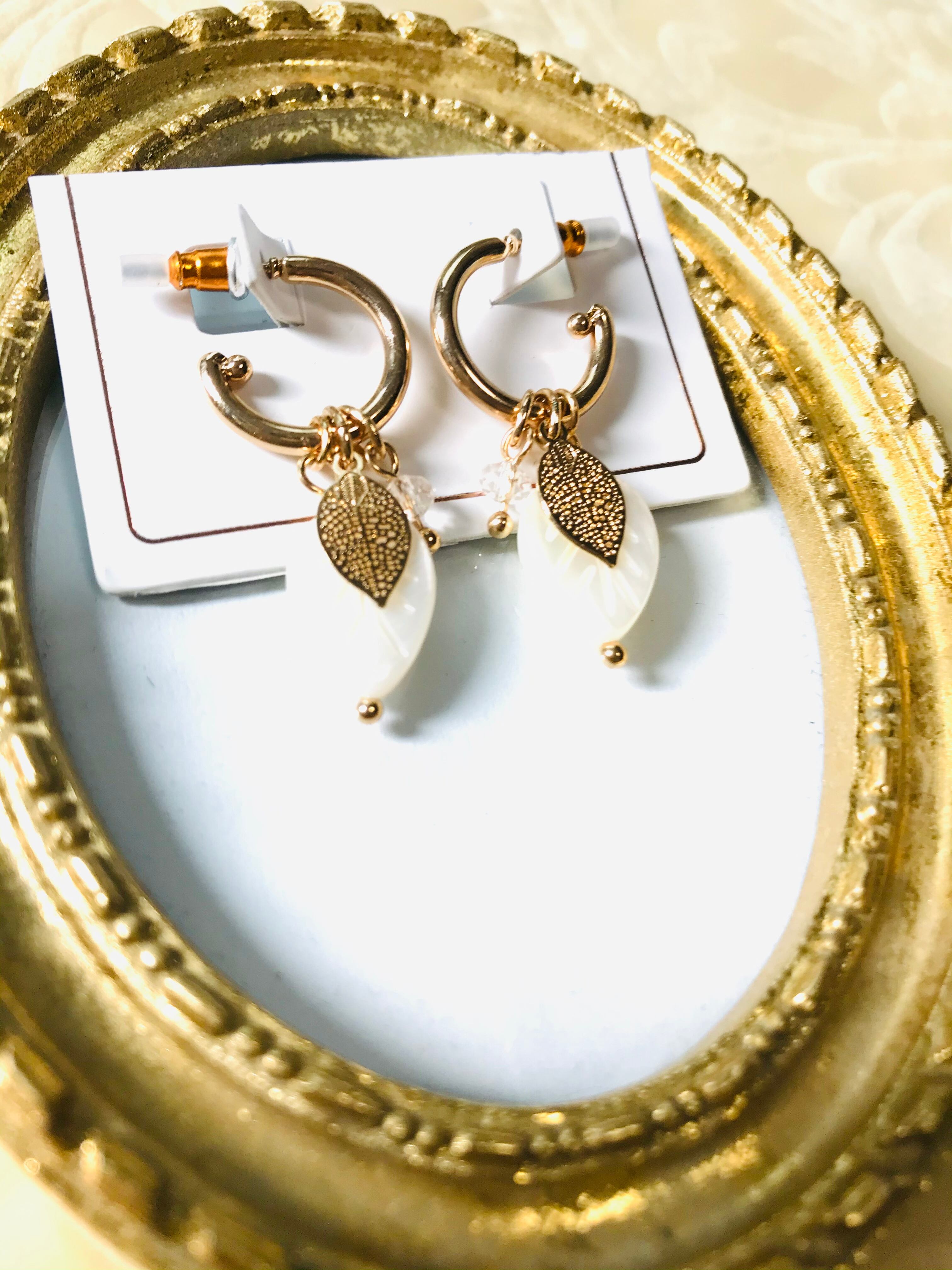ホワイトシェルとゴールドリーフの大人可愛いピアスがフランスより入荷しています。