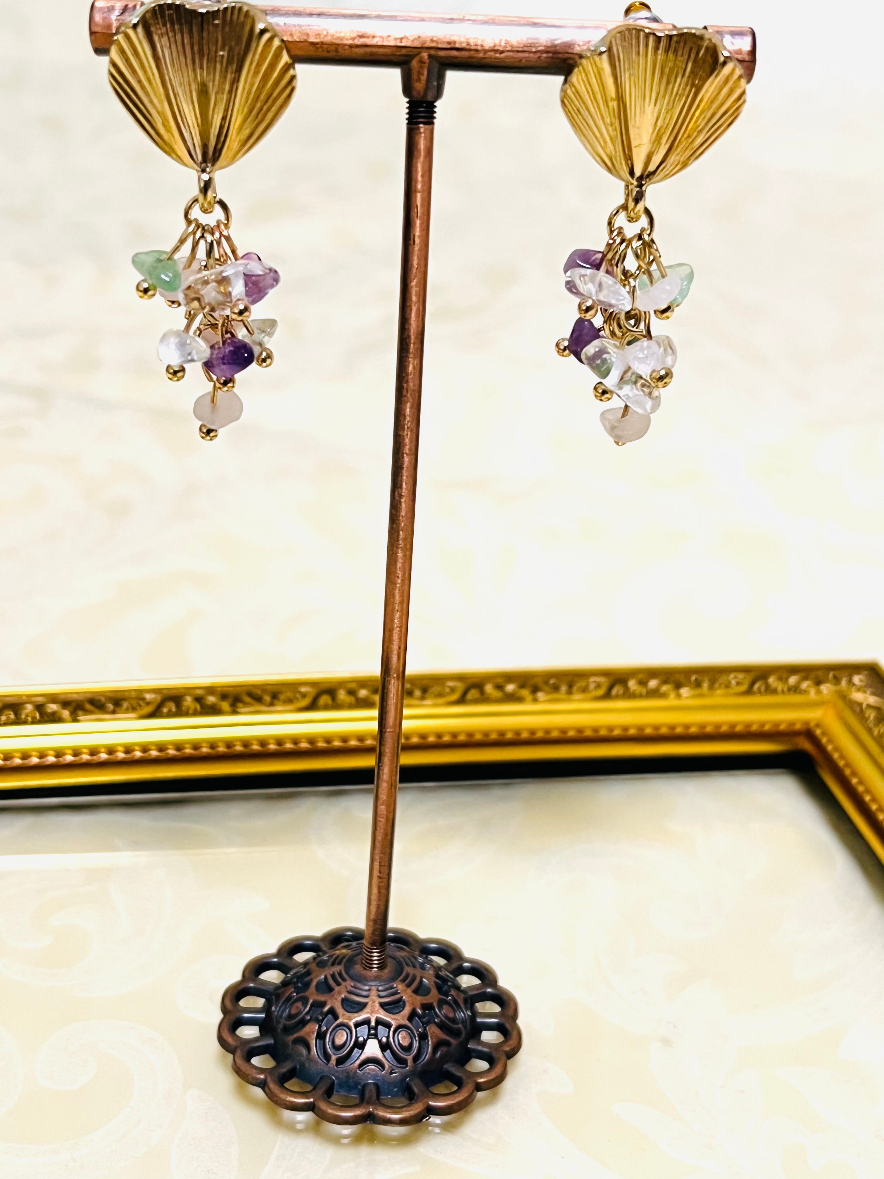 女性らしいデザインで爽やかな色使いが印象的な可愛いピアスです。