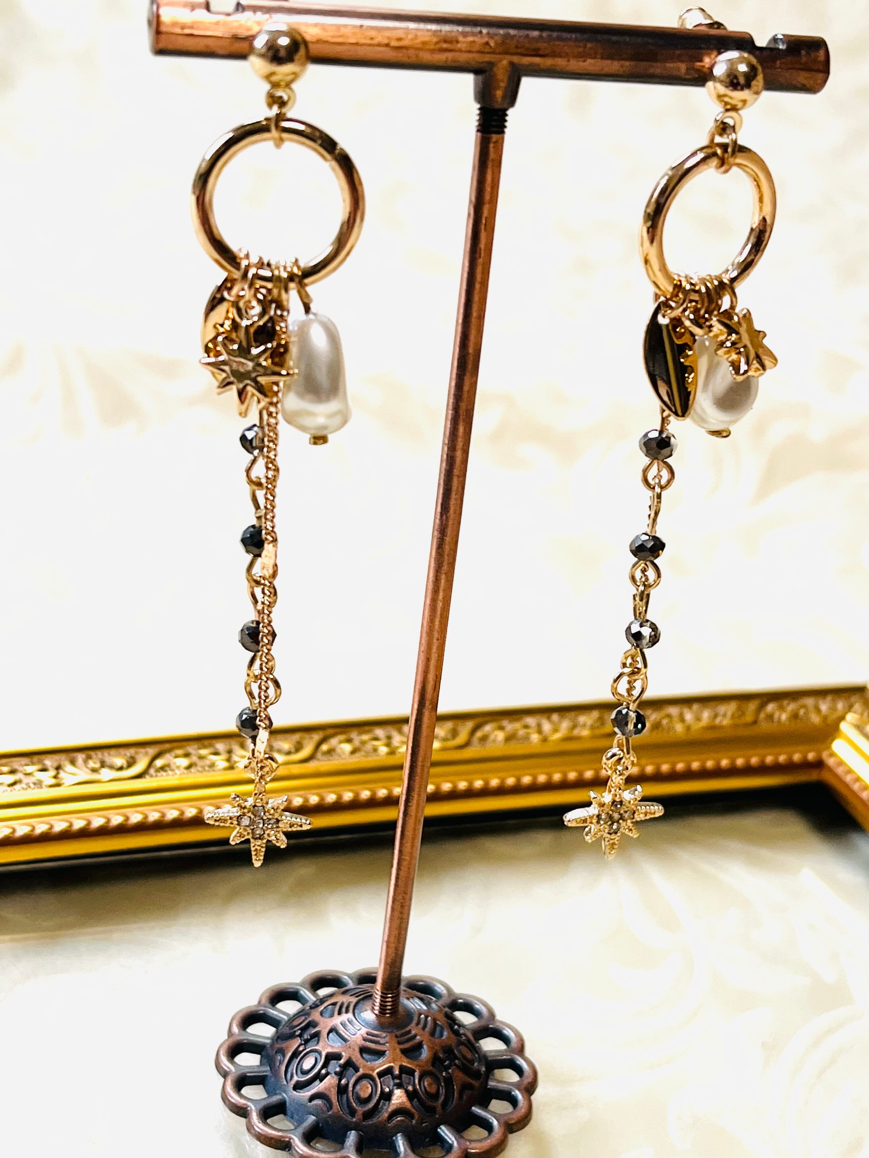 #フランス輸入アクセサリー#フランス直輸入#フランスアクセサリー#フランス輸入#フランス#パリ#ロングピアス#揺れるピアス#スター#パール#お洒落アクセサリー#存在感のあるピアス