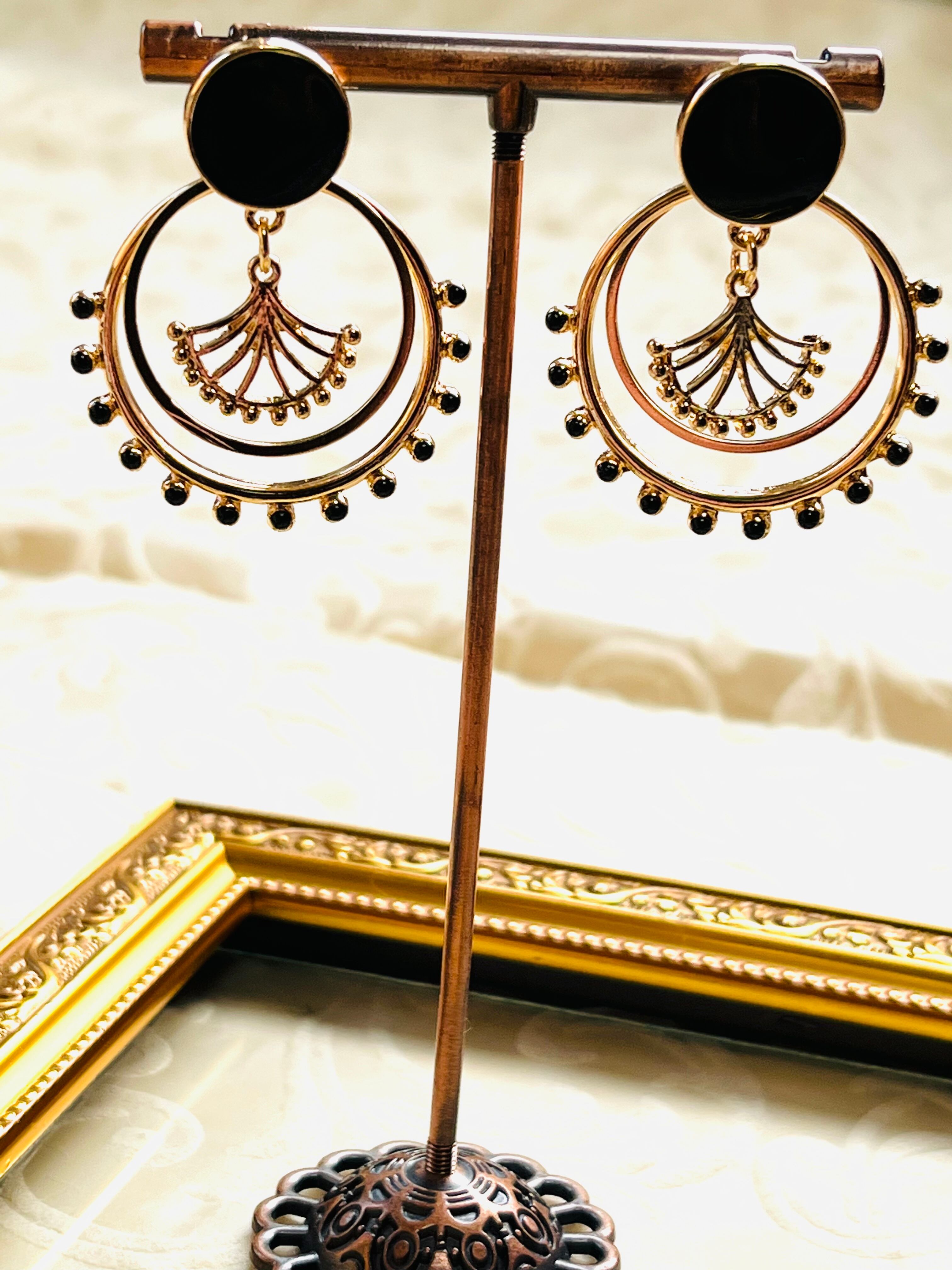 【再入荷】イチョウ・ブラック&ゴールド・フランスピアス