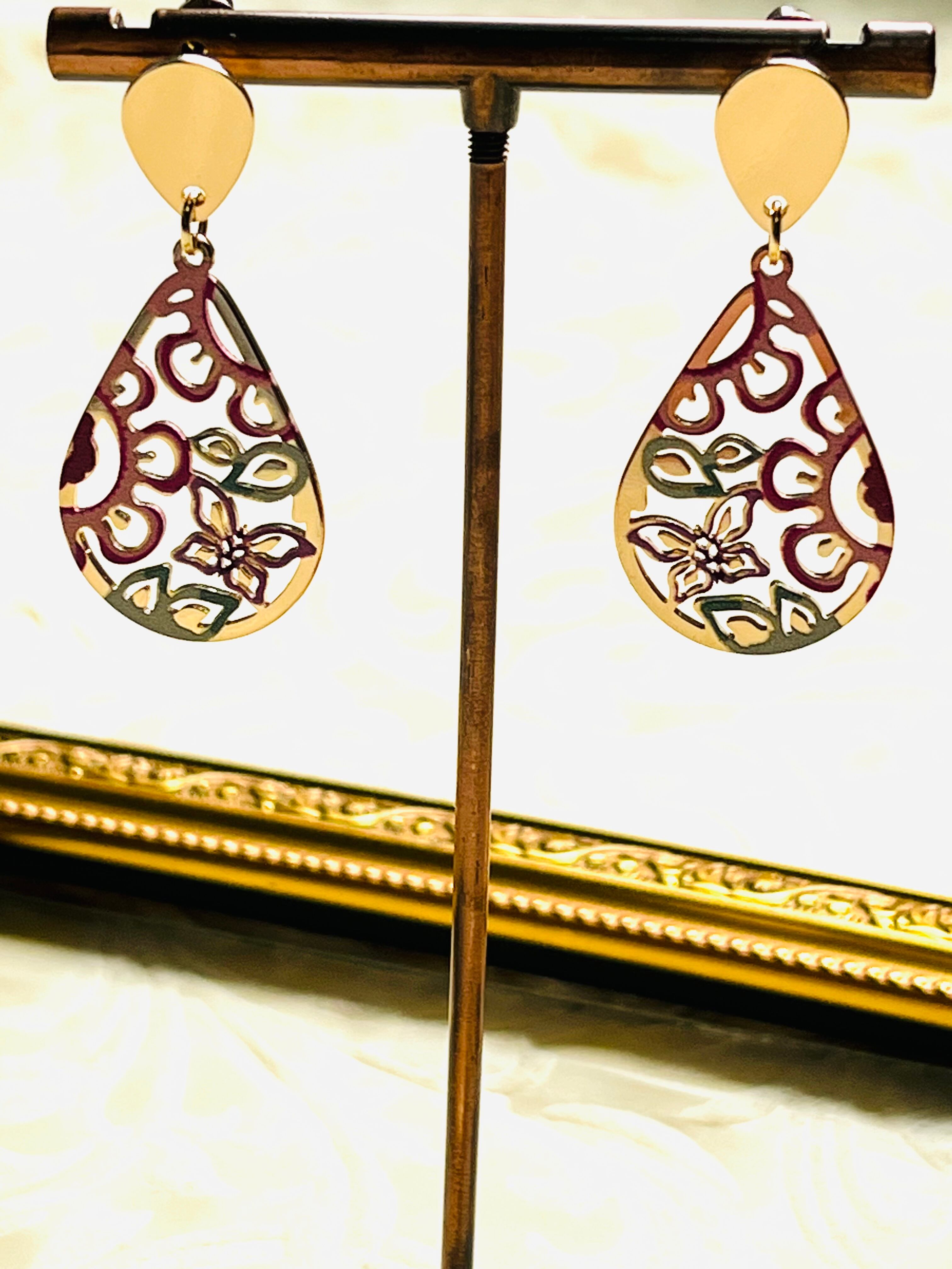 バタフライとフラワーデザインの透かし模様が目を引く、フランスピアスのご紹介です。上品でエレガントなデザインが女性らしさを引き立て、華やかな印象を与えます。シンプルなコーディネートにも、ドレスアップした装いにも合わせられ、様々なシーンで活躍するアイテムです。 このフランスピアスがあなたの日常を彩り豊かなものにし、新しい扉を開けてくれることを願っています。
