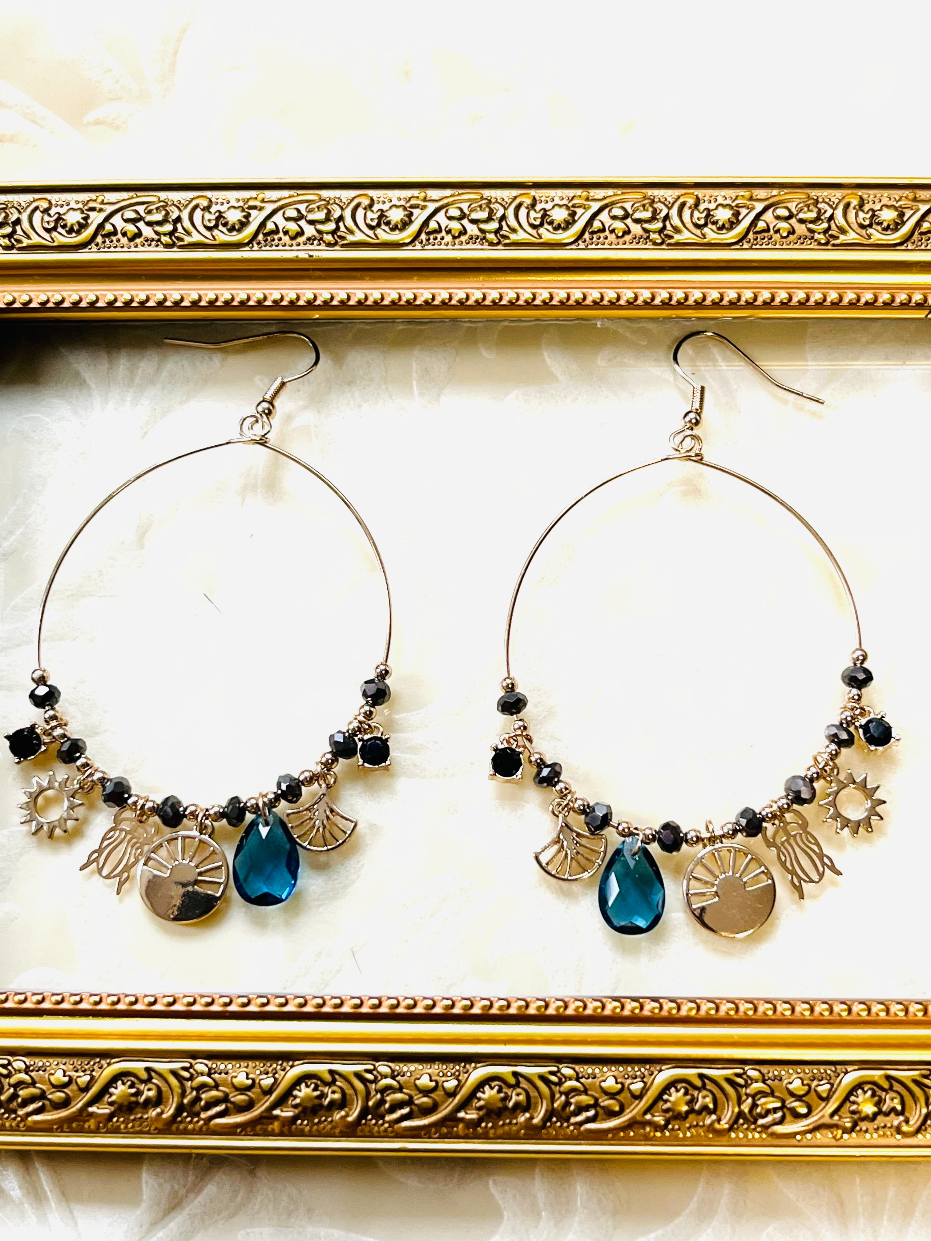 #フランス直輸入#フランスアクセサリー#フランスピアス#フランス輸入#フランス#パリ#大振りピアス#ループピアス#大振りループピアス#ブルー#太陽#カブトムシ#個性的ピアス