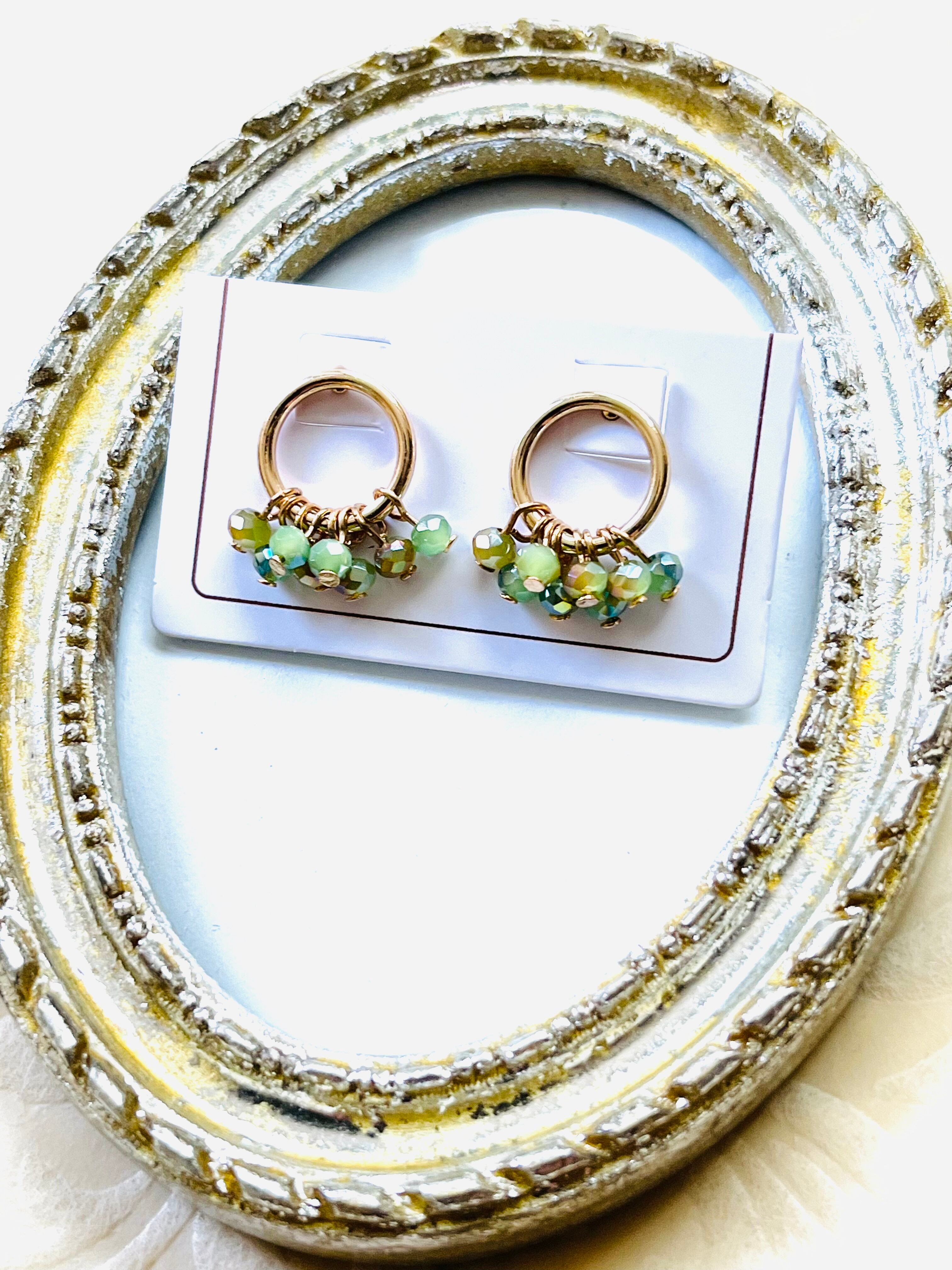 キラキラと輝くグリーンが耳元を爽やかに飾るピアスがフランスより入荷しました。光を反射するグリーンビーズが煌めき、顔周りに明るい印象を与えます。程良いサイズなので、どんなコーディネートにも合わせやすく、普段使いや特別なシーンにもピッタリです。