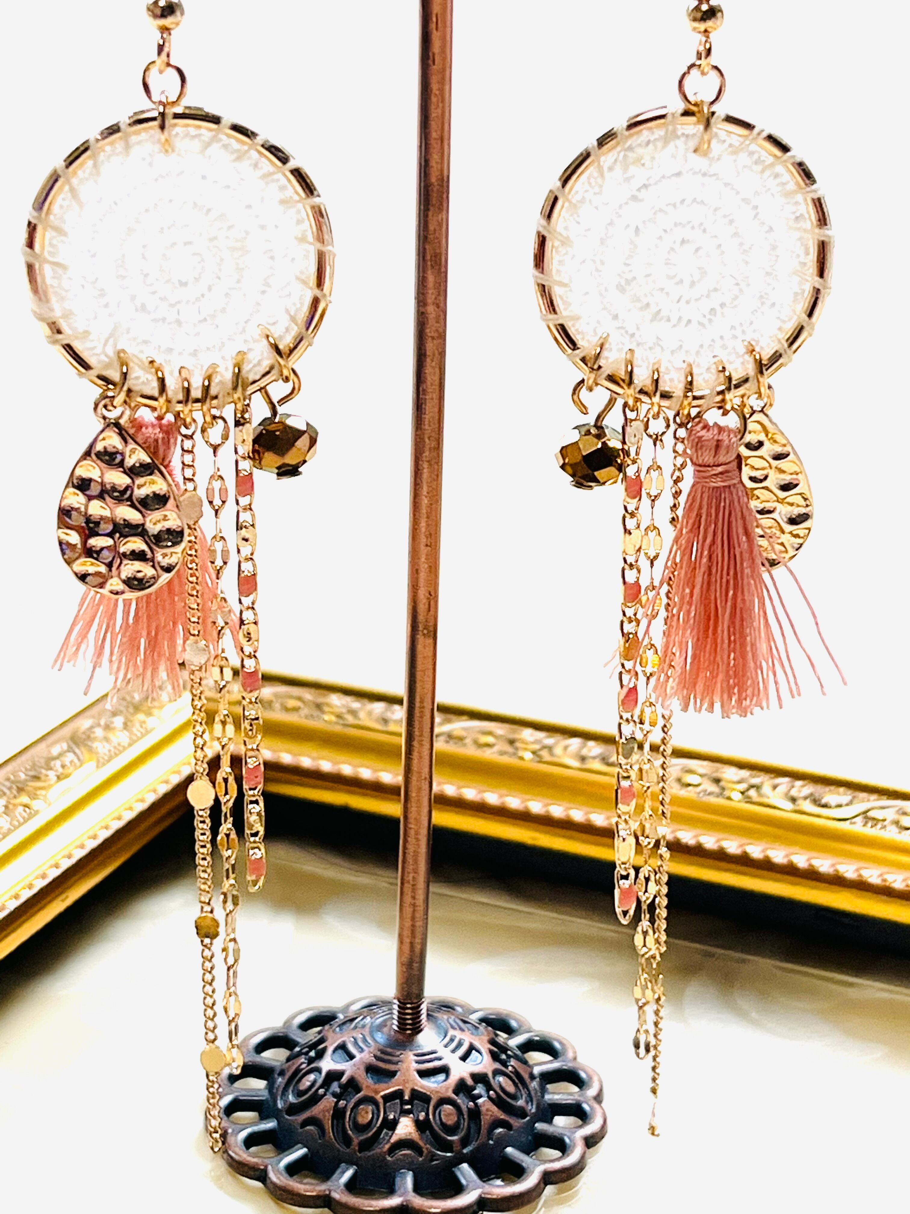 ピンクフリンジ付きで繊細なデザインが印象的なロングピアスがフランスより入荷しました。
