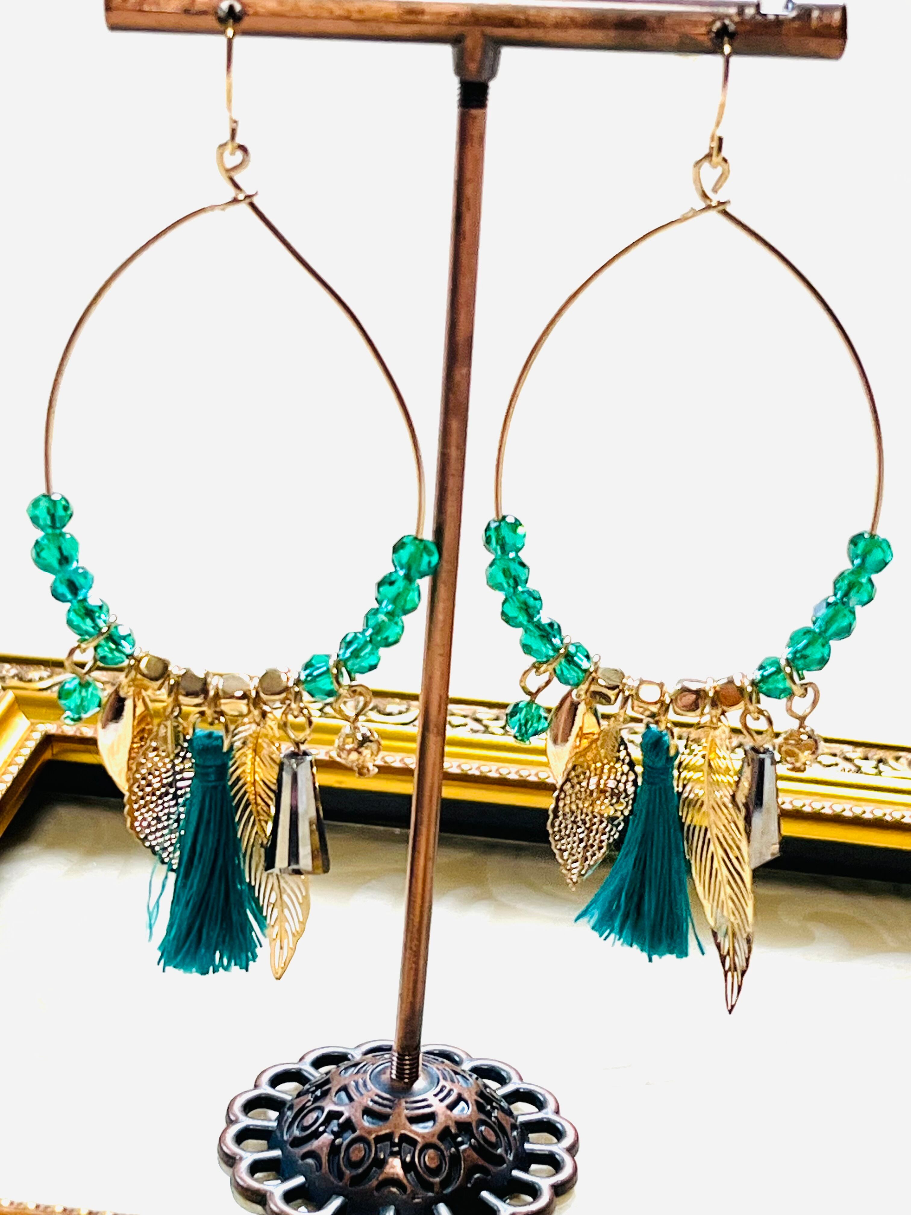 グリーンタッセル&ゴールドリーフ大振りピアス