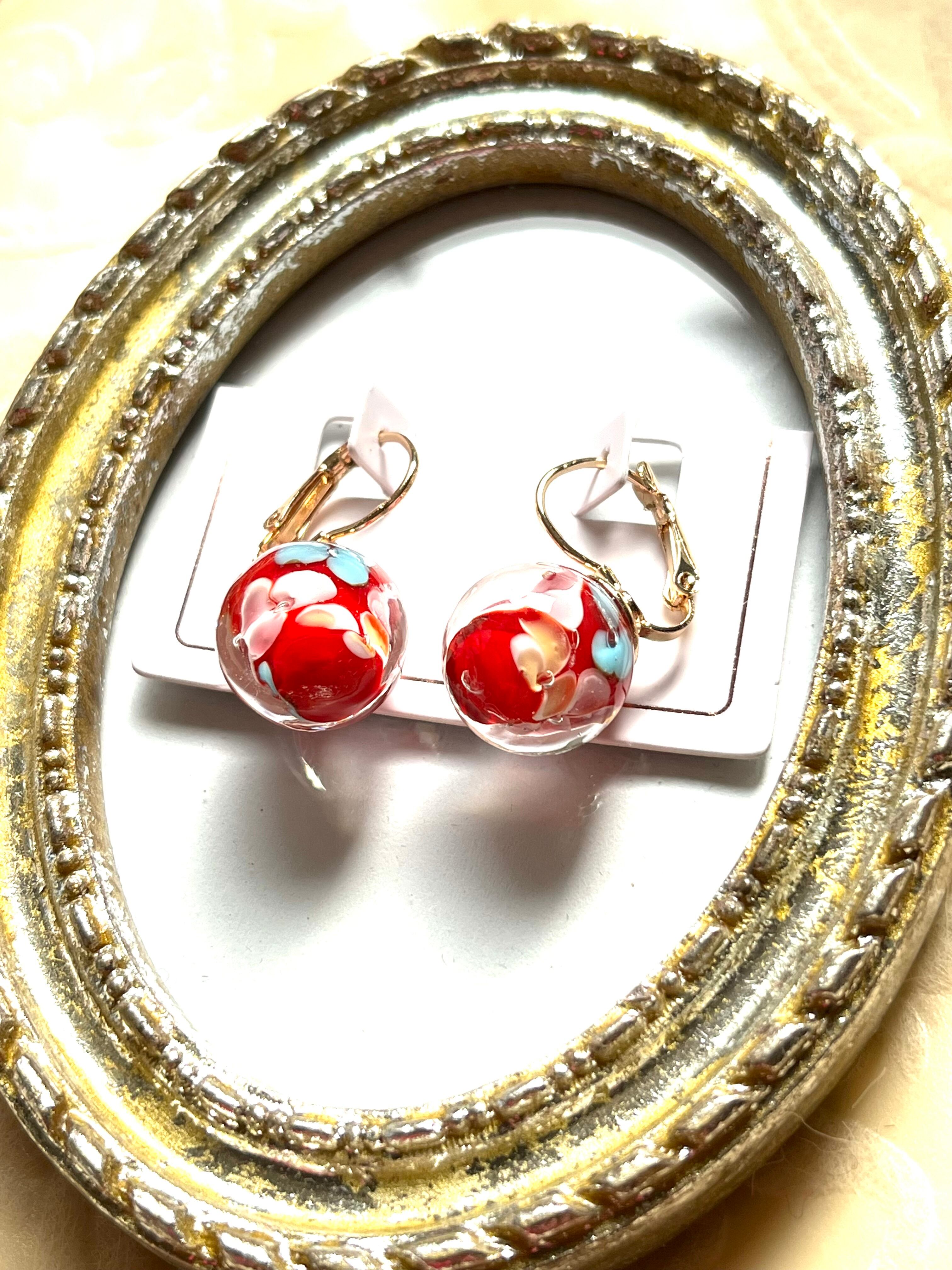 美しく輝く赤色のガラスボールに、可愛いお花模様が描かれたピアスがフランスより入荷しました。直径約1.2cmと小ぶりながら、存在感があり、耳元を上品に彩ります。透け感のある赤色は、光を通すとさらに美しく見え、おしゃれに敏感な女性にはとても魅力的に映ることでしょう。