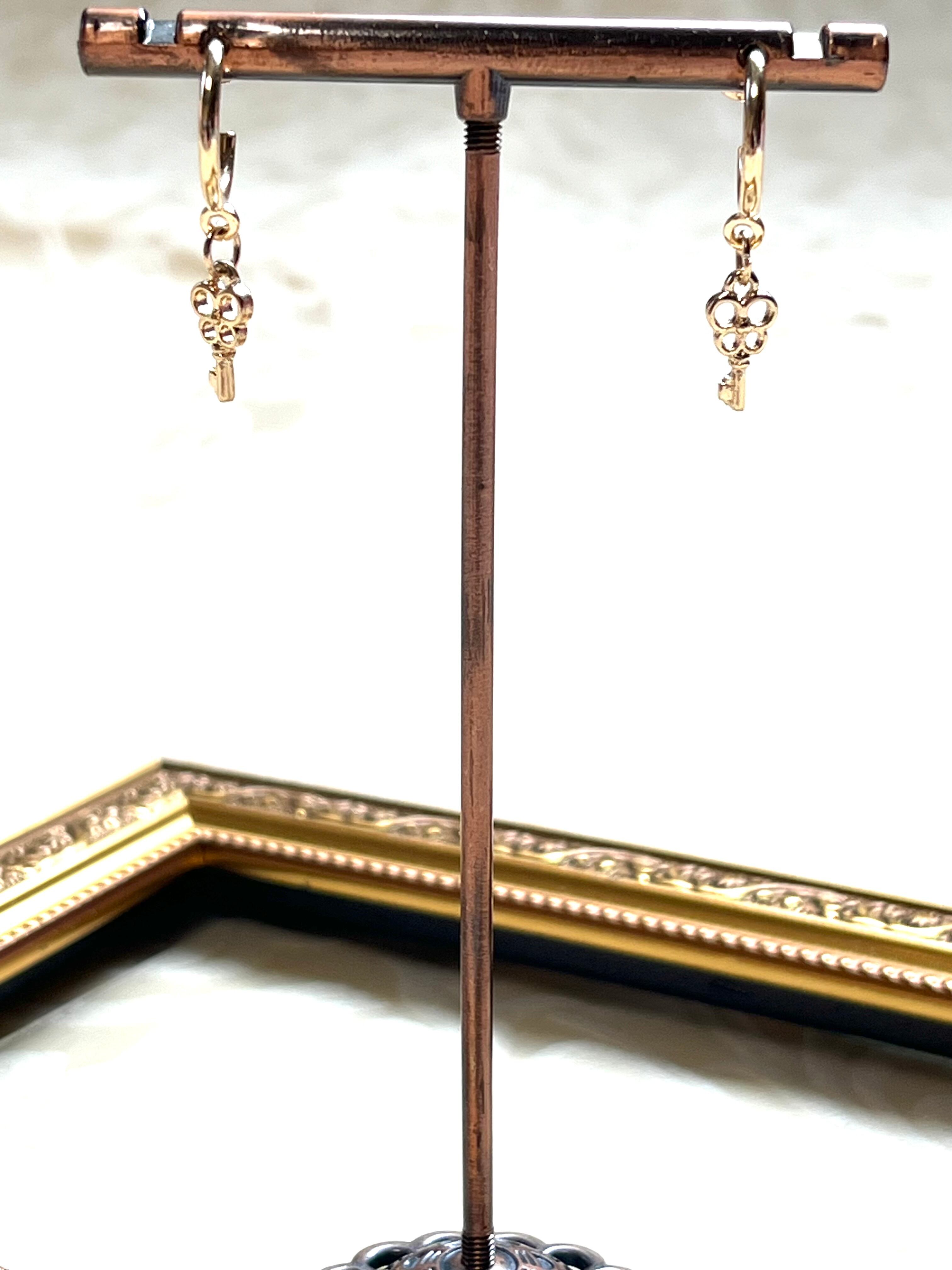 耳元で揺れる小さなキーが魅力的なピアスがフランスより入荷しています。キュートな鍵の形がお洒落アクセントになり、日常使いからパーティーシーンまで、幅広く活躍します。