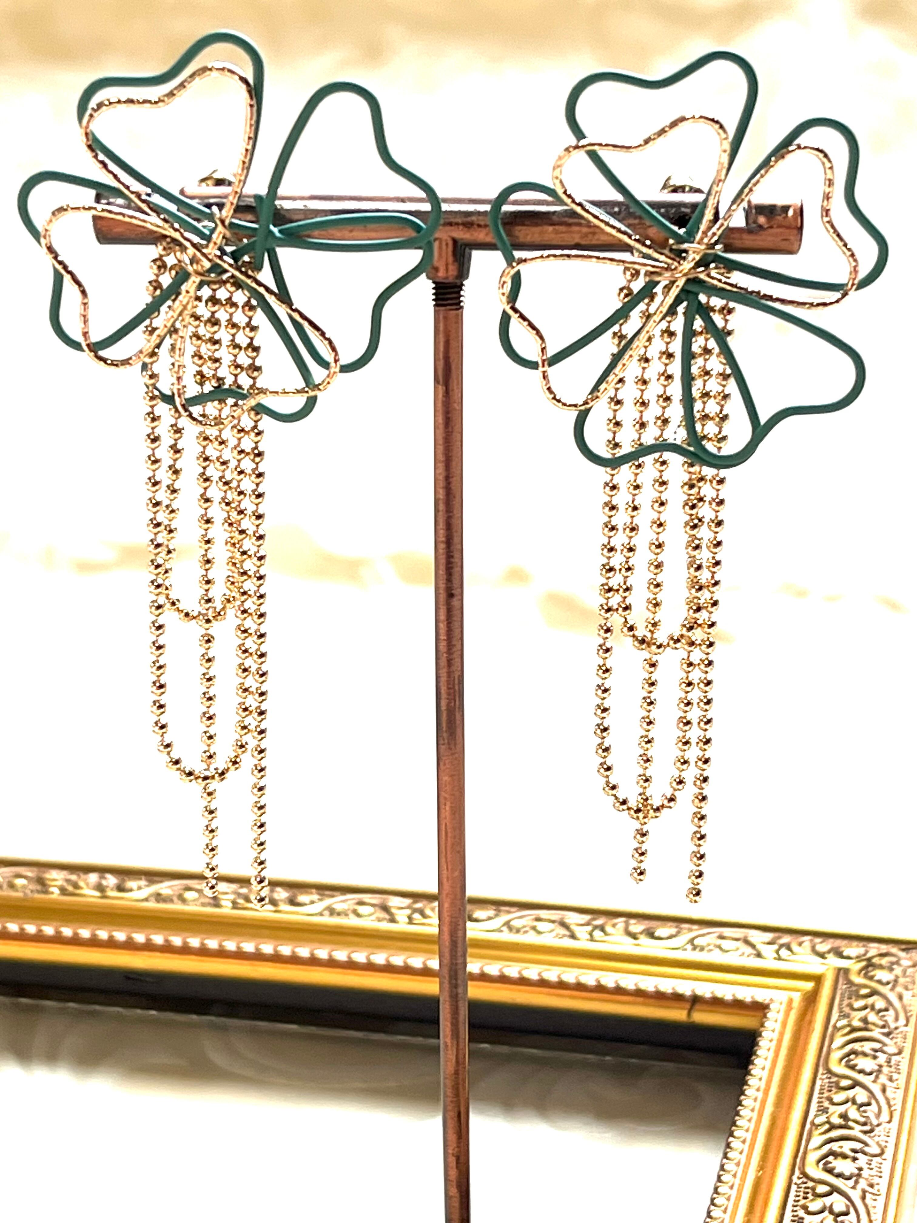 【再入荷】2WAY・グリーン&ゴールドのフラワーピアス