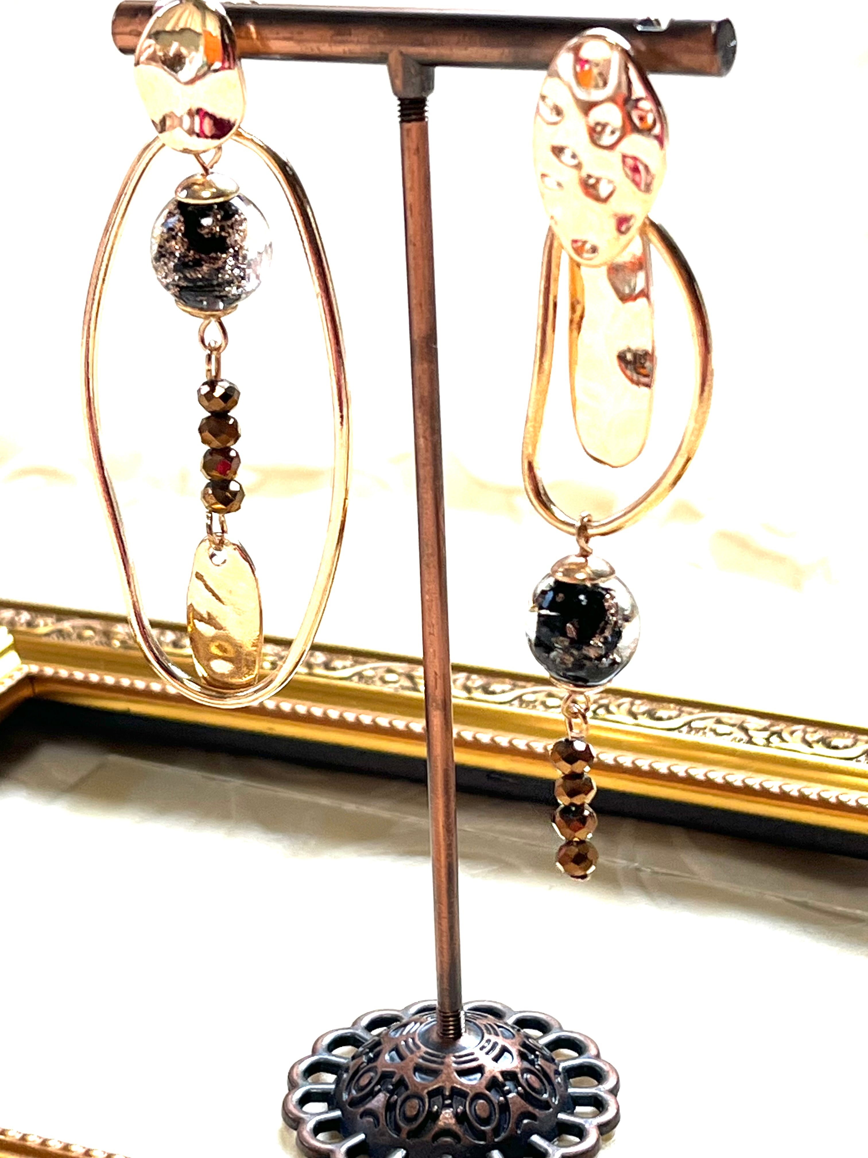 存在感のあるデザインで、普段のコーディネートに華やかさをプラスしてくれること間違いなし!の個性的な大人ロングピアスです。