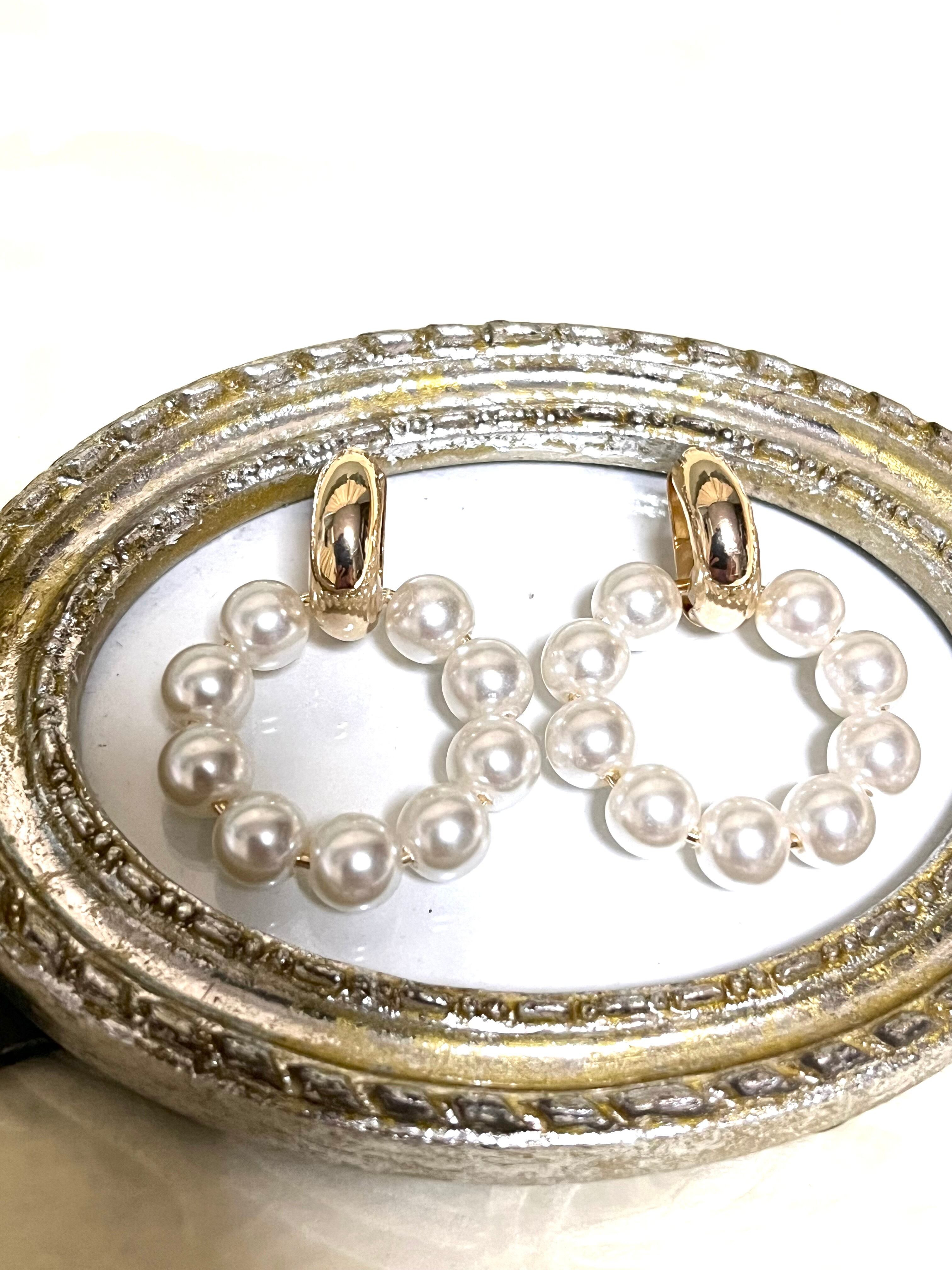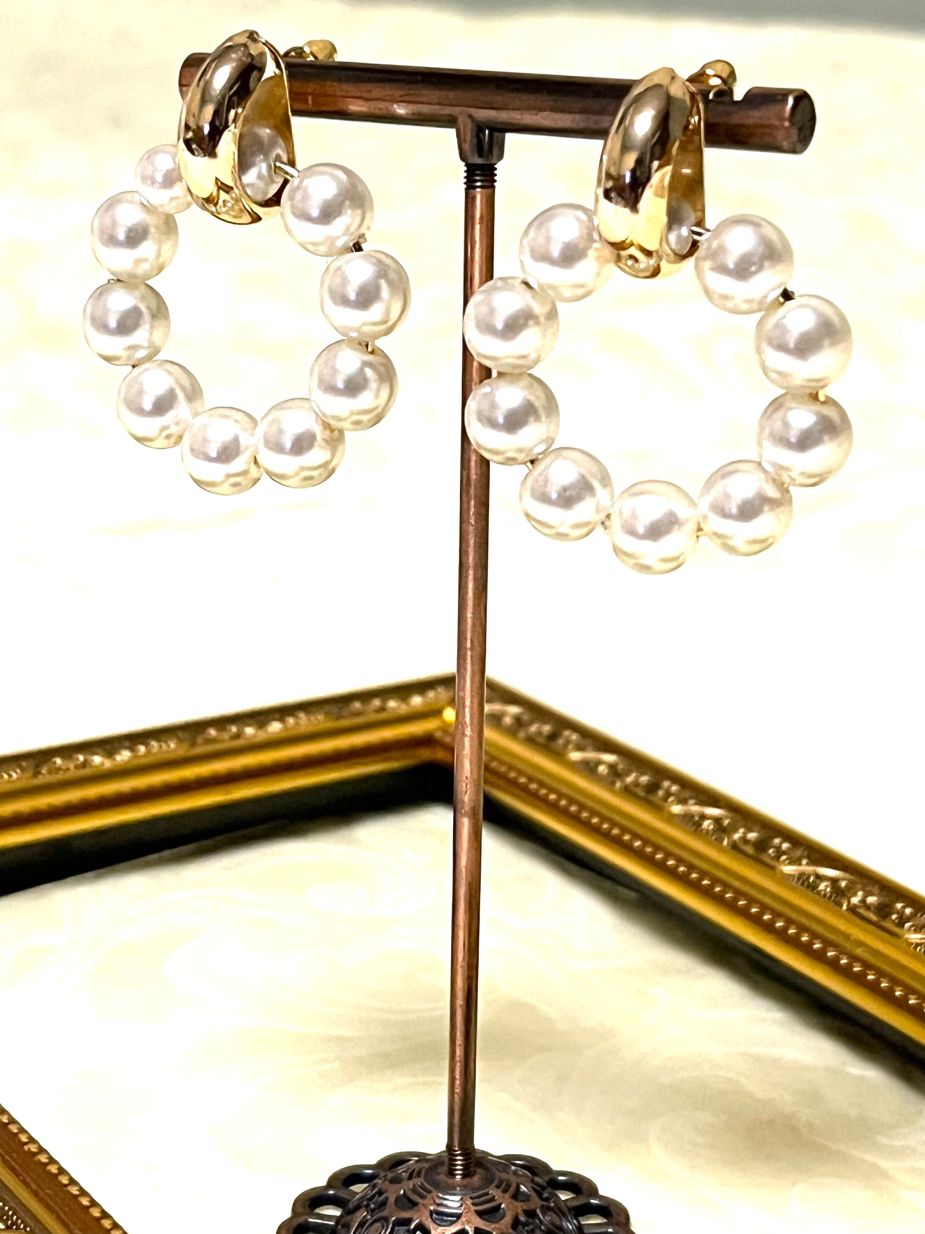 上品で女性らしさを引き立て、華やかさをプラスするパールのループピアスがフランスより入荷しました。シンプルながらも存在感のあるデザインは、どんなコーディネートにも合わせやすく、日常使いから特別なシーンまで幅広く活躍します。