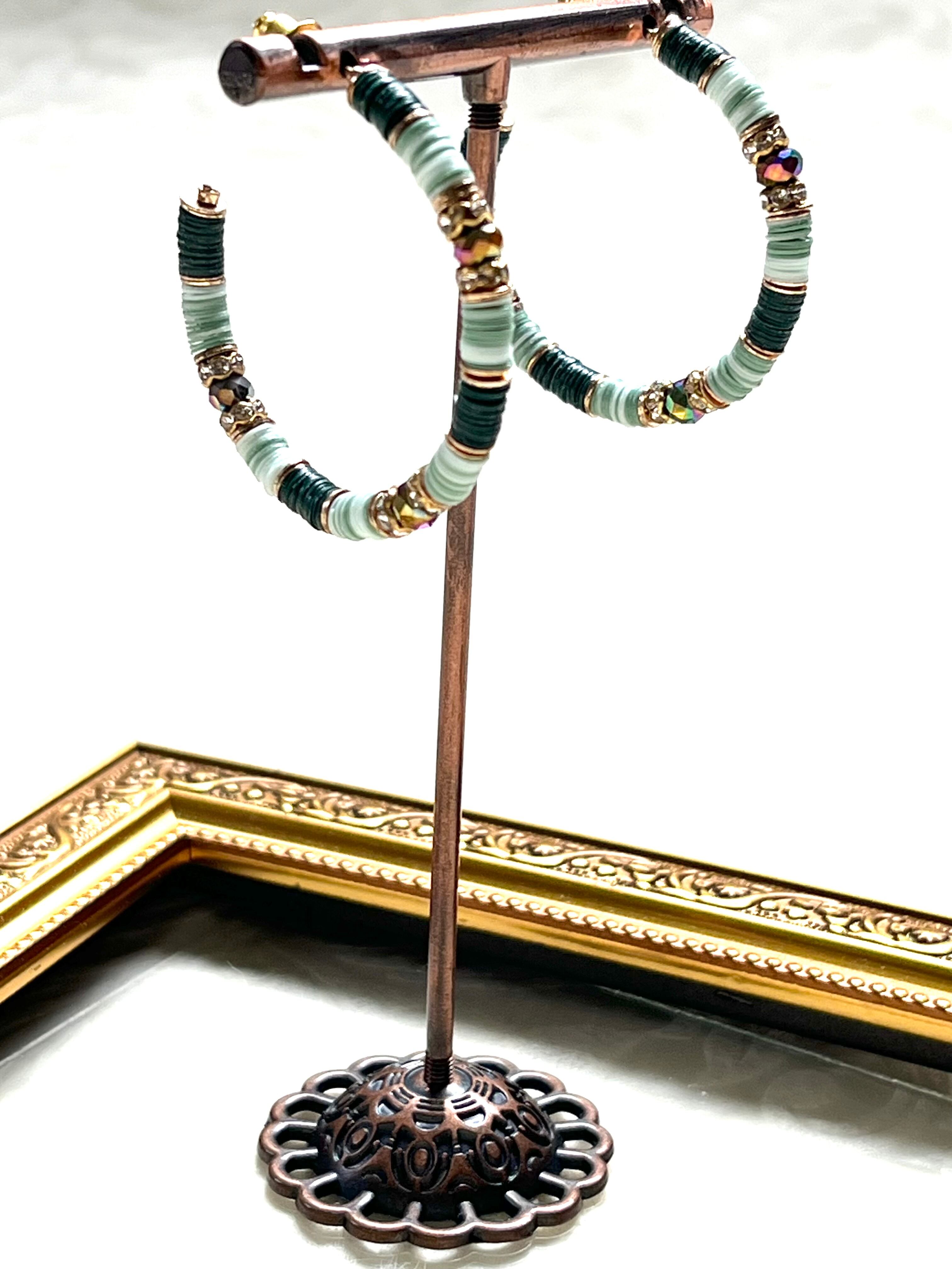 美しいグリーンとゴールドのカラーコントラストが魅力のフープピアスがフランスより入荷しました。