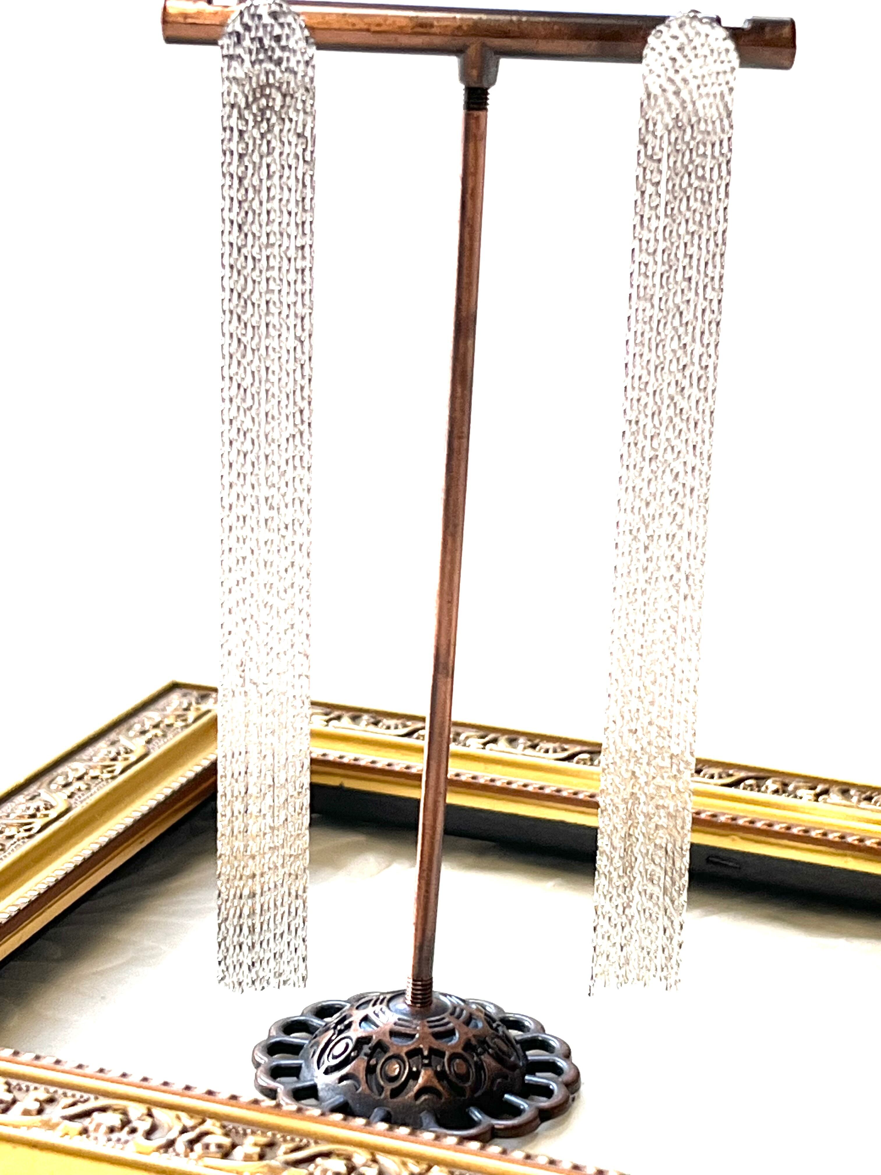 揺れる大人のロングピアスがフランスより新入荷しました!シルバーカラーの洗練されたデザインは、耳元にエレガントな印象を与え、様々なコーディネートに華やかさを添えます。このアクセサリーは、揺れる動きが魅力的で存在感があり、特別なシーンでも活躍するアイテムです。
